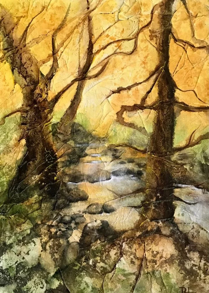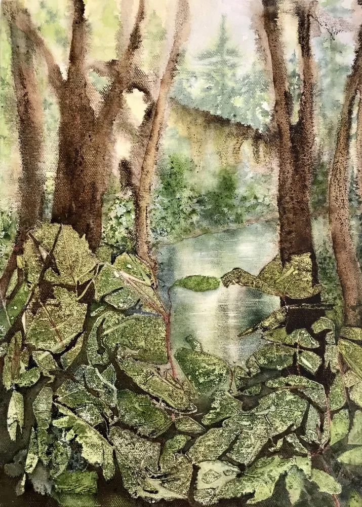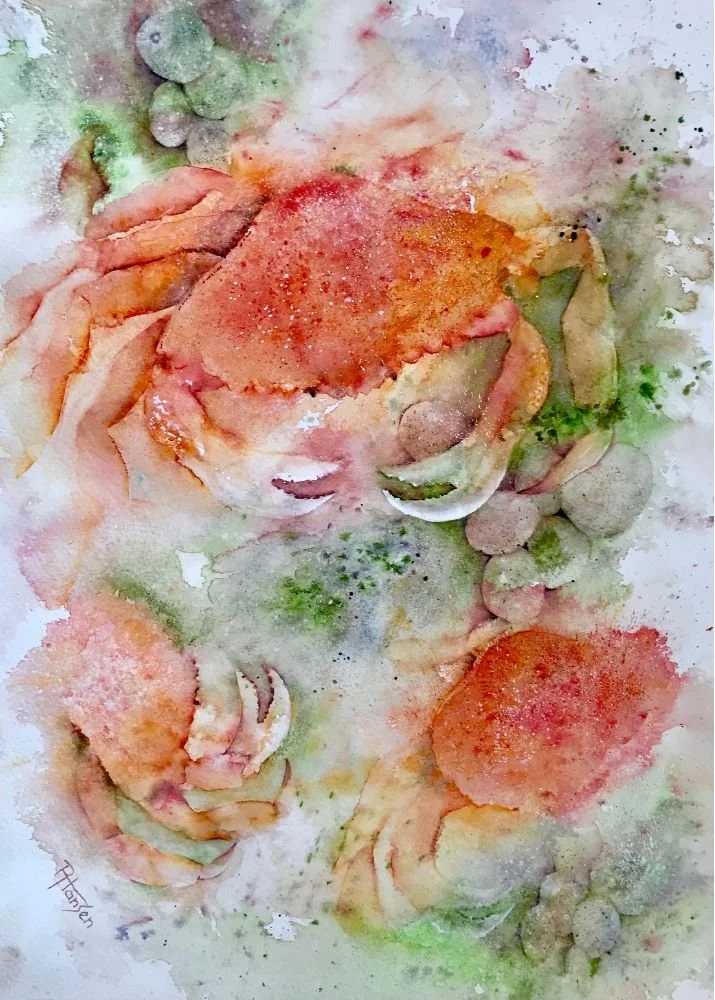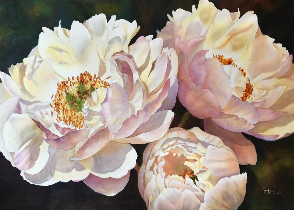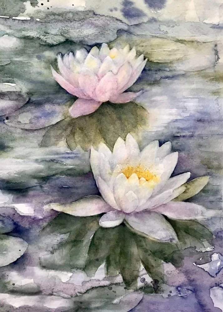 Printed art cards are reproduced from my original paintings. Each comes with a color coordinated envelope, and is sealed in a protective cellophane bag. The cost of these 5 x 7” blank note cards is $6.00 each or 4 for $20.00.