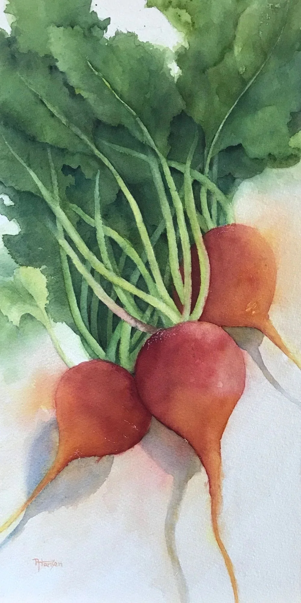 While vegetables may not be a common painting subject they offer vibrant colors, interesting patterns and textures, and wonderful sculptural shapes. In a world of extreme weather events and conflict, many struggle to get enough to eat. With a growing number of people adopting a plant strong diet I wish to showcase the inherent beauty of vegetables and fruit.